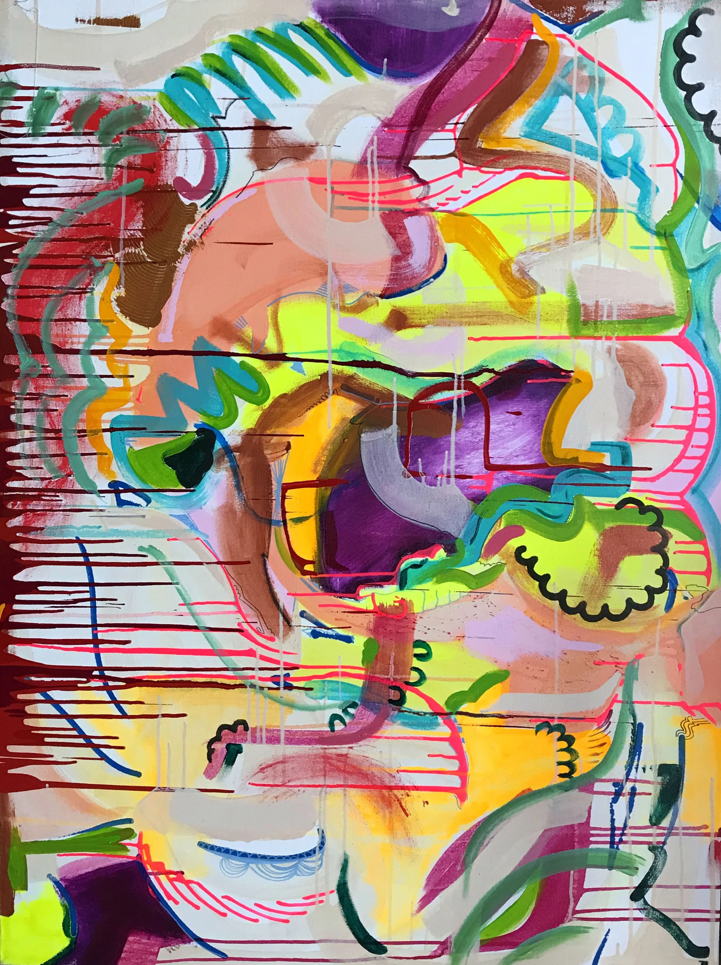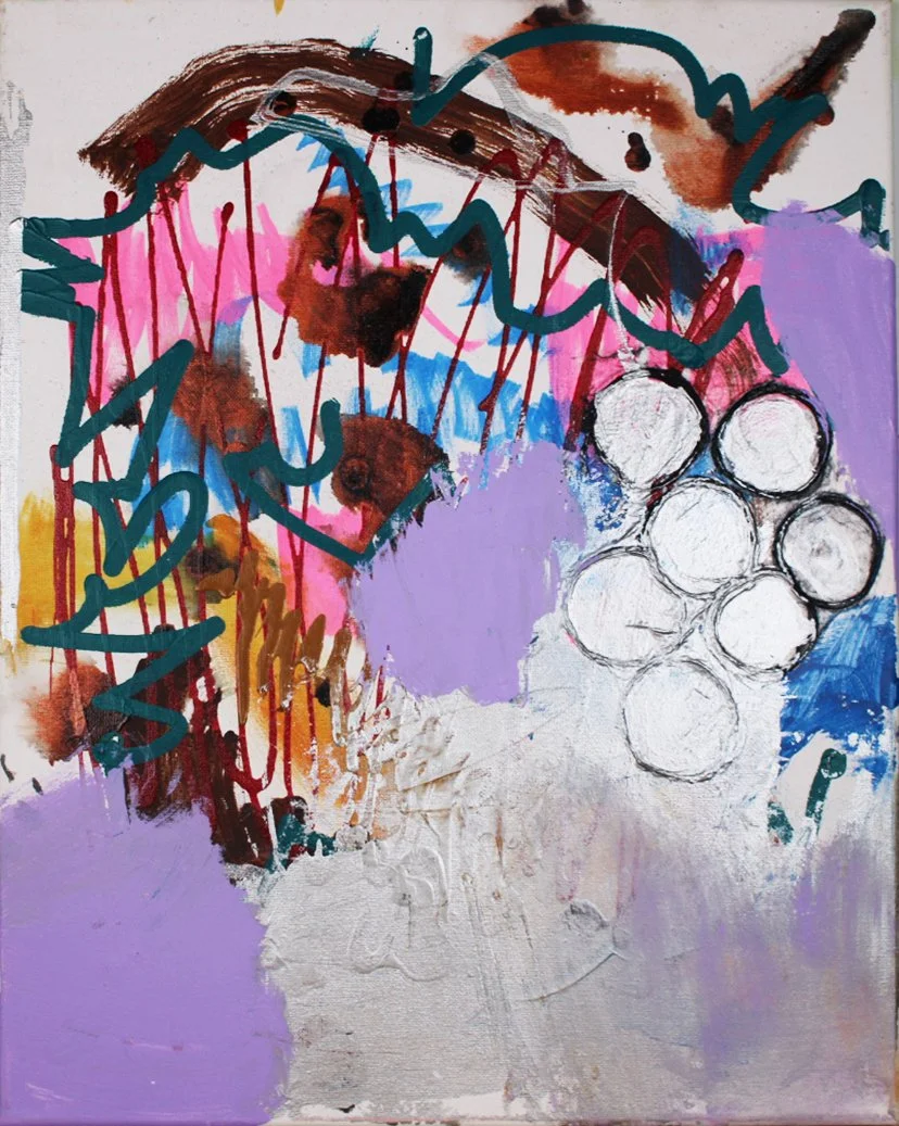Wrobel calls this stage of out output "reactionary expressionism," which they have defined as: “work that is moved by the moment, often a catalogue of recorded actions input into the canvas.” They begin each artwork with words or select phrases and from their selected readings and then with each mark, they create an underpainting that moves and reacts to layering of colors and materials used in the moment. This fluidity creates depth and coded meaning in their work and the layering itself is symbolic of the complexities of identity and lived experiences.Wrobel's artistic practice extends to community work which has taken many forms over the years. They have organized art critique groups, managed art studios and hosted LGBTQ+ events and more. They currently live in Portland, OR with their partner, dog and sixty-some plants and flowers.